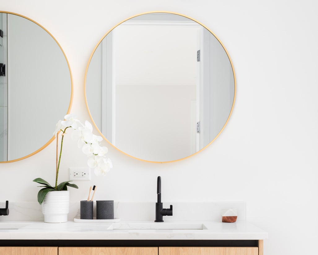 Sposób montażu zależy od rodzaju lustra. Urządzenie łazienki z okrągłym lustrem nie wymaga klejenia, a raczej montażu za pomocą śrub z kołkami rozporowymi lub użycia tzw. gwoździ samoprzylepnych.