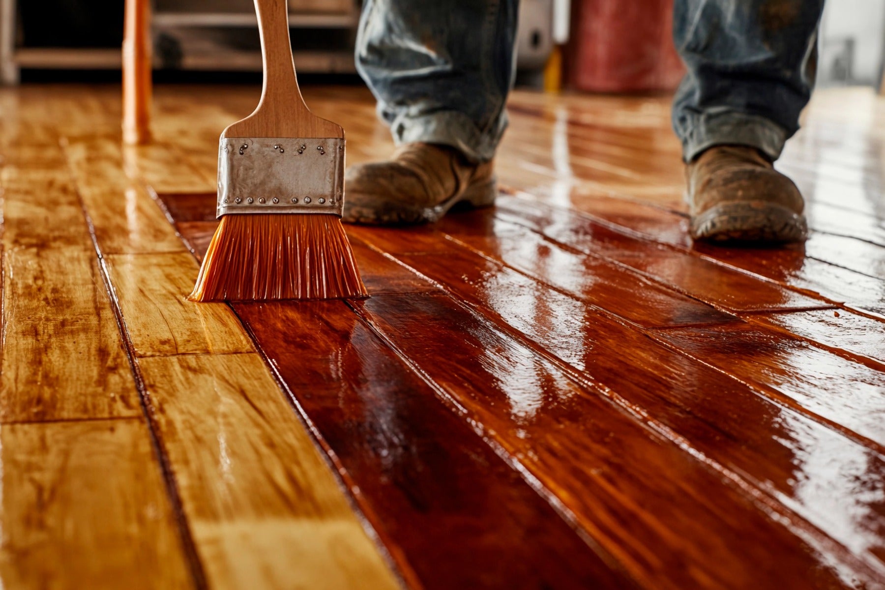 · preparat do wykończenia podłogi – lakier do parkietu, wosk lub farba.