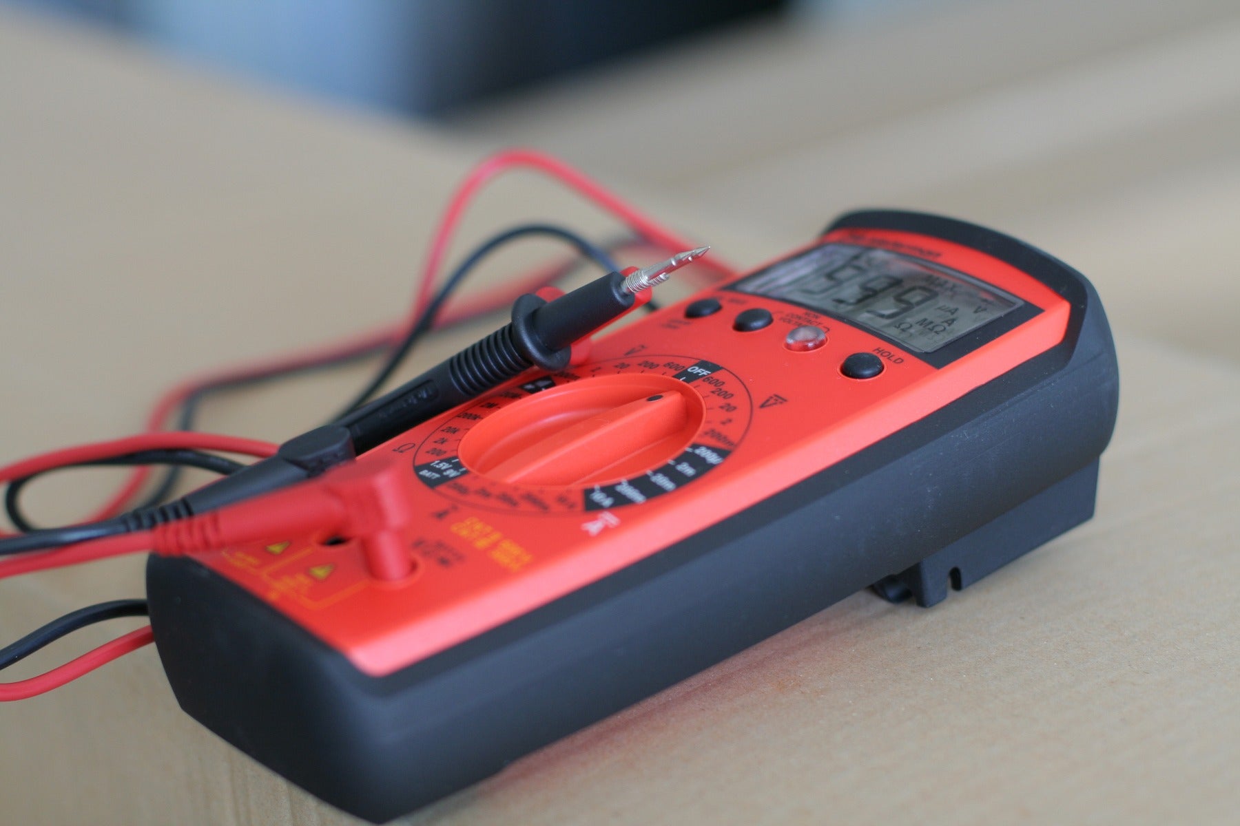 Ustaw miernik na zakres omomierza i podłącz przewody do wyprowadzeń elementu. Prawidłowo działający kondensator powinien wykazać chwilowy wzrost rezystancji, który następnie dąży do wartości nieskończonej. Oznacza to, że kondensator ładuje się z baterii miernika.
