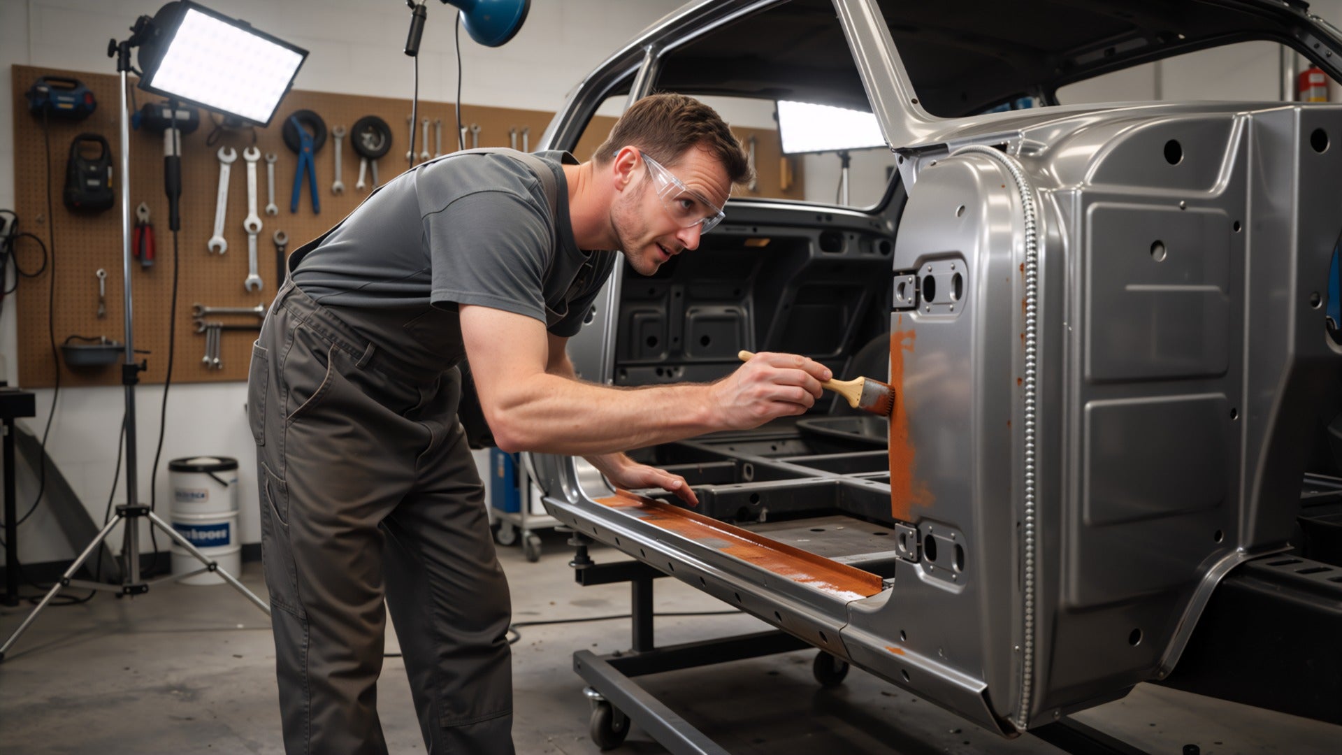 Nawet najlepsza farba na rdzę w samochodzie nie zadziała prawidłowo, jeśli metal nie zostanie odpowiednio przygotowany. Rdza powinna być usunięta mechanicznie – szczotką drucianą, papierem ściernym o gradacji 80–120 lub tarczą lamelkową.