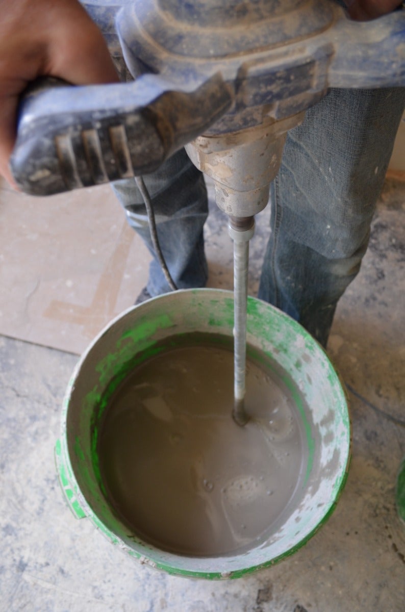 Kleje do płytek, kleje gipsowe i zaprawy wyrównujące mają zazwyczaj konsystencję średnio gęstą. Do ich przygotowania najlepiej stosować mieszadła spiralne lub mieszadła z długą spiralą kierującą masę ku dołowi.