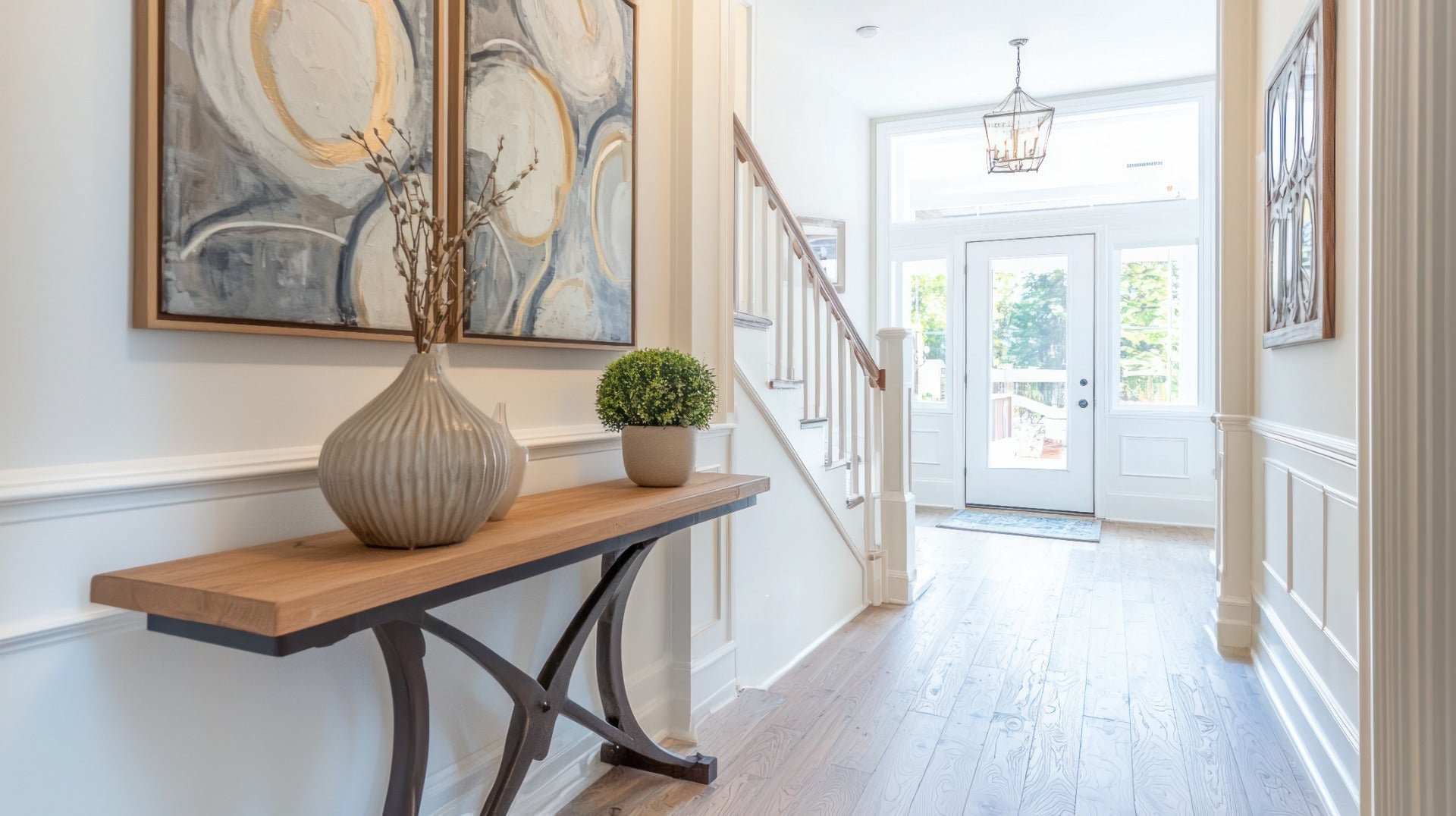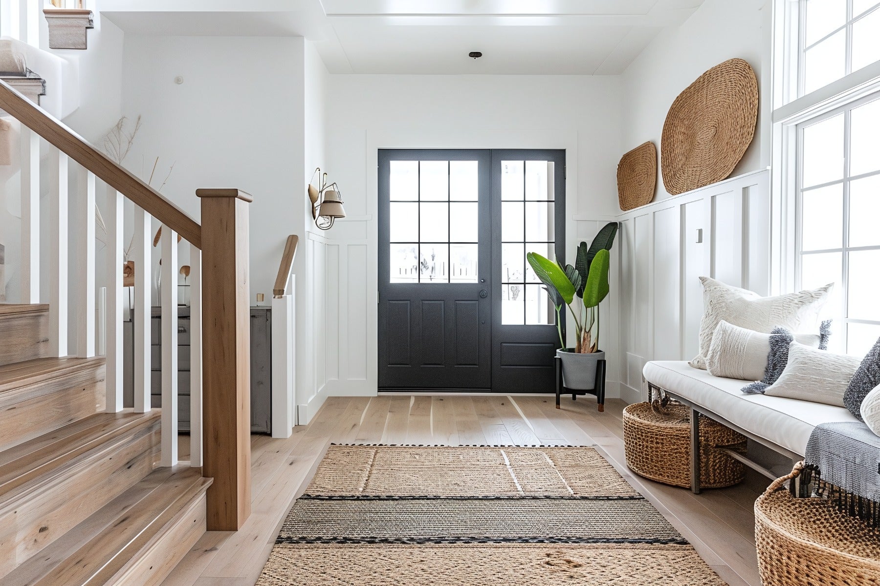 Szklane drzwi do wiatrołapu doświetlają przestrzeń i poprawiają funkcjonalność wejścia.